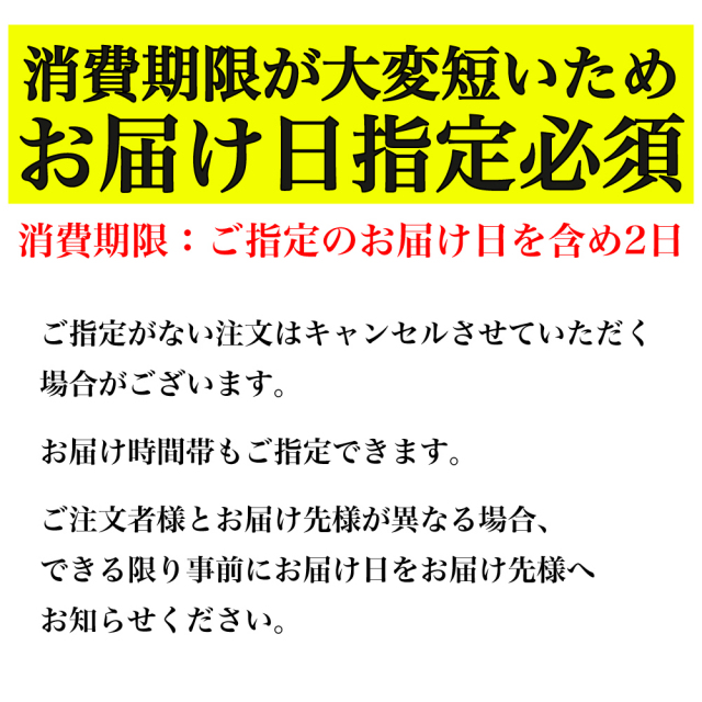 | 消費期限 | ご指定のお届け日を含めて2日間 |