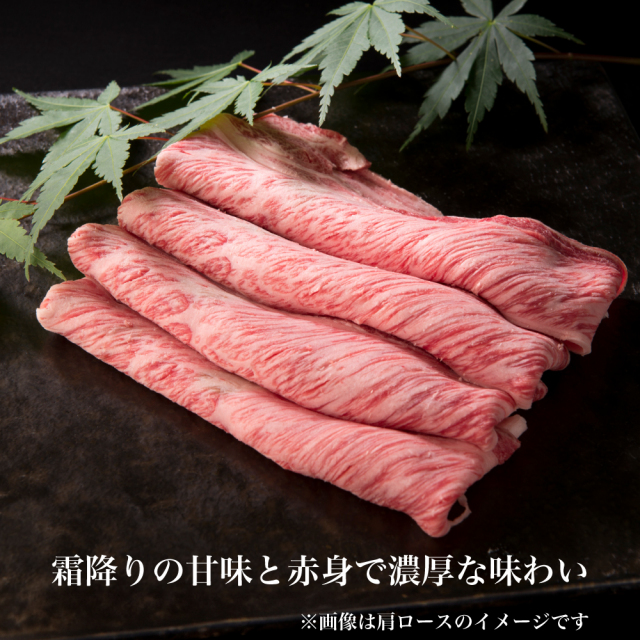 肩ロース:肩から背肉にかけての長いロース肉。キメ細やかな肉質で、美しい霜降りと口の中でとろけるような食感が特徴です。脂の甘味と赤身の旨味で濃厚な味わいをご堪能いただけます。