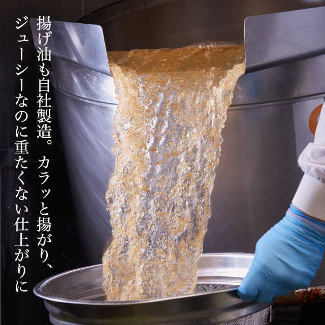 自社製造の豚のラードを使用。カラッと揚がるので、ジューシーでも重たくない仕上がりになります。