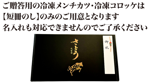※ご贈答用の冷凍メンチカツ・冷凍コロッケはお付けできるのし紙が小さいため、名入れができません。何卒ご了承ください。