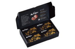 ご贈答用箱にお入れしてお届けします。1パック2個入りの小分け包装が4パック入るサイズです。